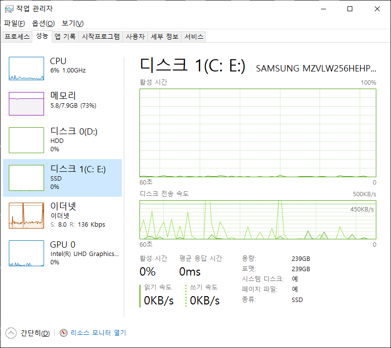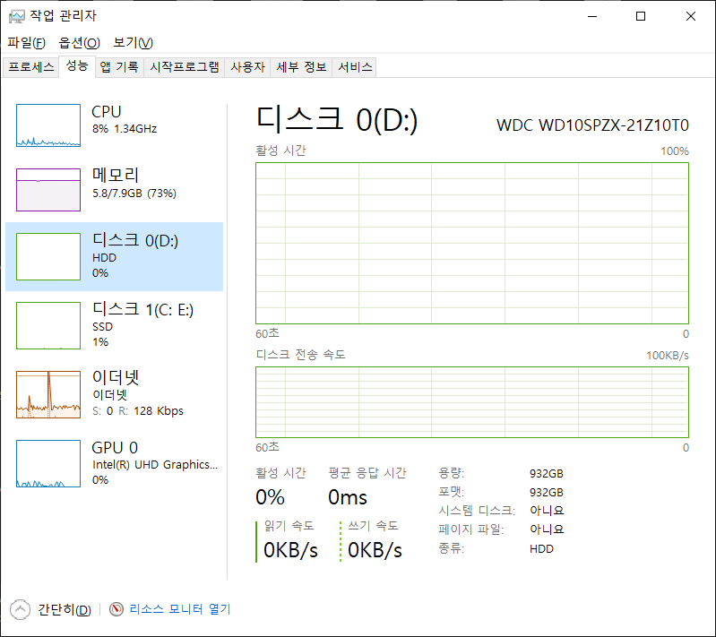디스크도 저 같은 경우는 2개가 장착되어 있어, 디스크확인도 가능 !!