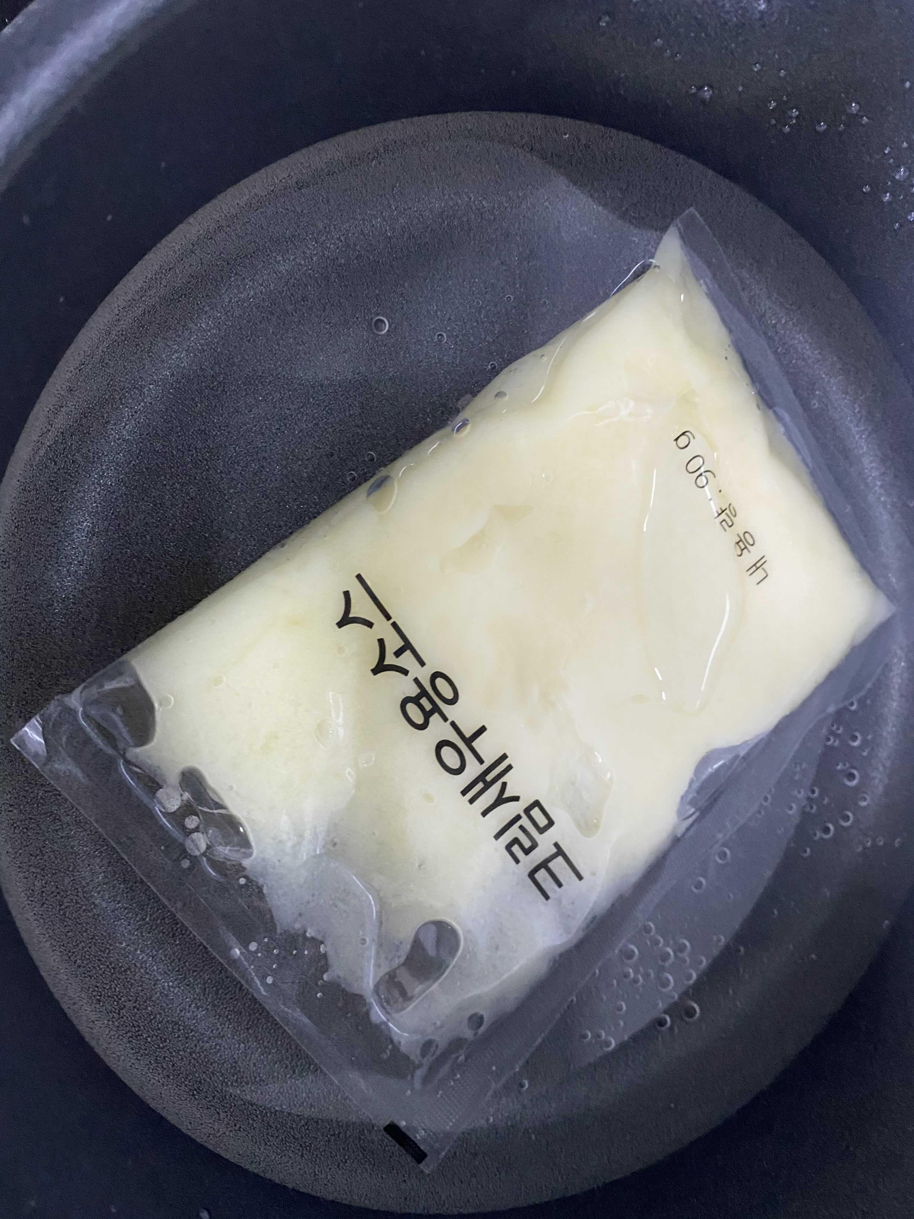 다음으로 크림새우소스를 뜨거운물에 데워서...